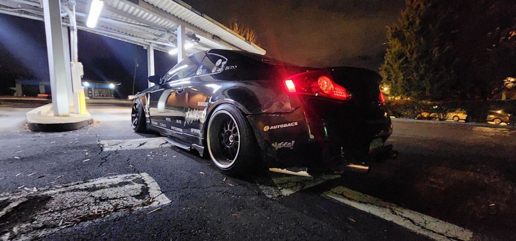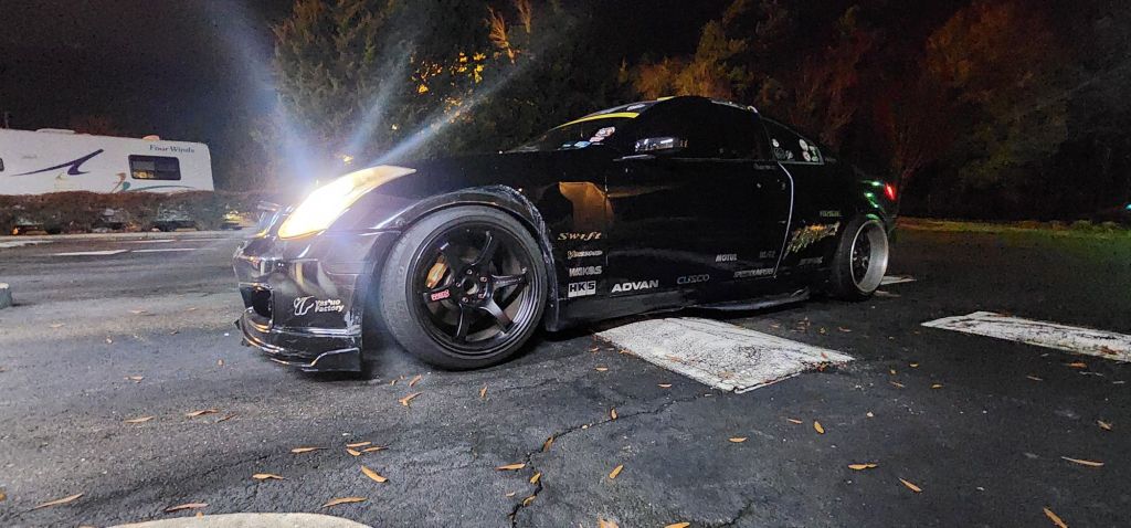 Haven’t moved the G35 in a long time. The FDF loosens up after a few miles, kills front tires, and makes the car feel like its totalled. I had parked it waiting for warm weather to go through it and tighten stuff. Last night I pulled the equips off. Two of the Grams have dead tires still from Fuel Fest so I put the VSXX on. The tire shop balanced them without me asking and destroyed my centers.