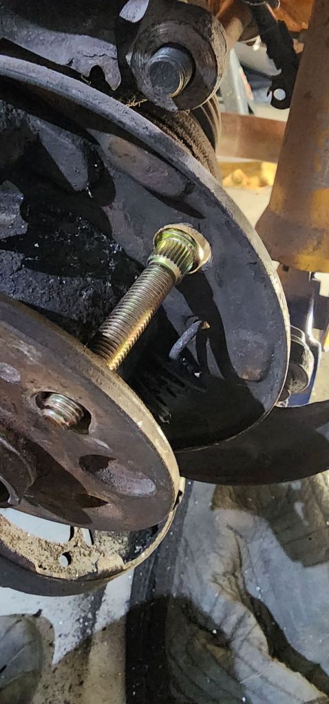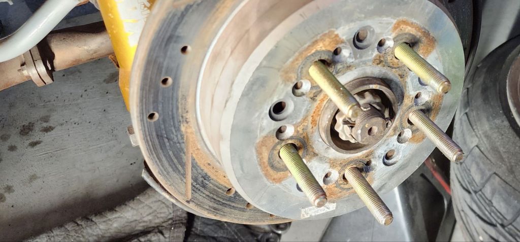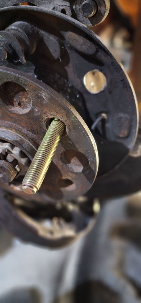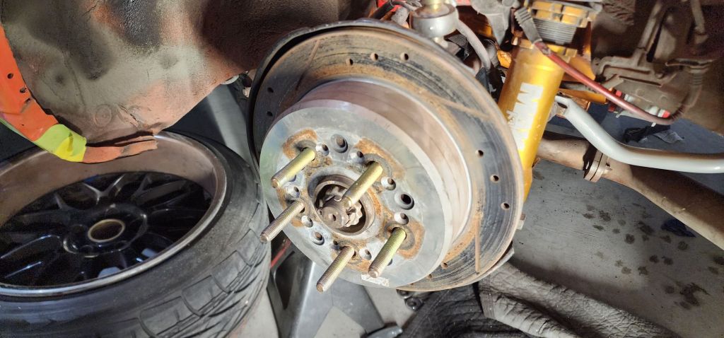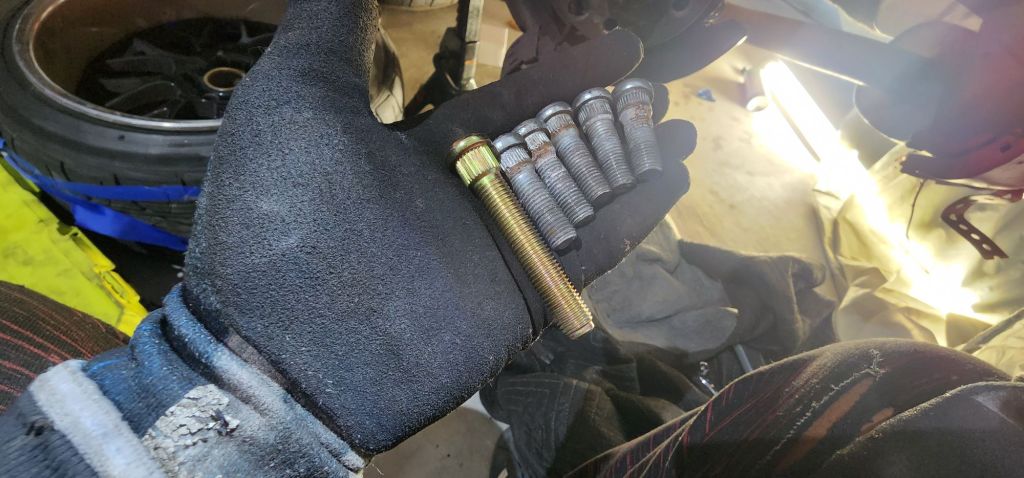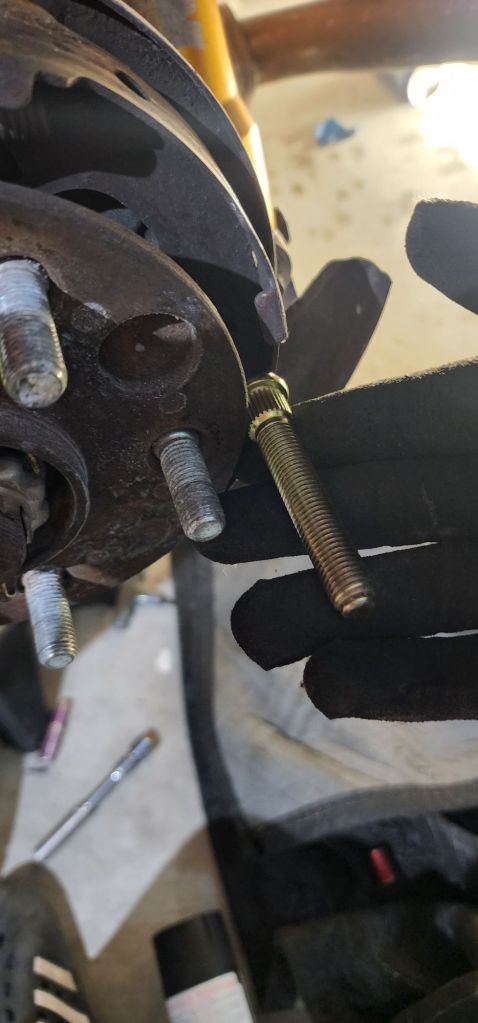 I also started working on adding hardened and extended studs to the rear. The stock ones are super short and I have sheered 4 out of 5 on one corner on two separate occasions. One of the scariest things ever. The last time was on a single lane road. I never plan for this to happen again.