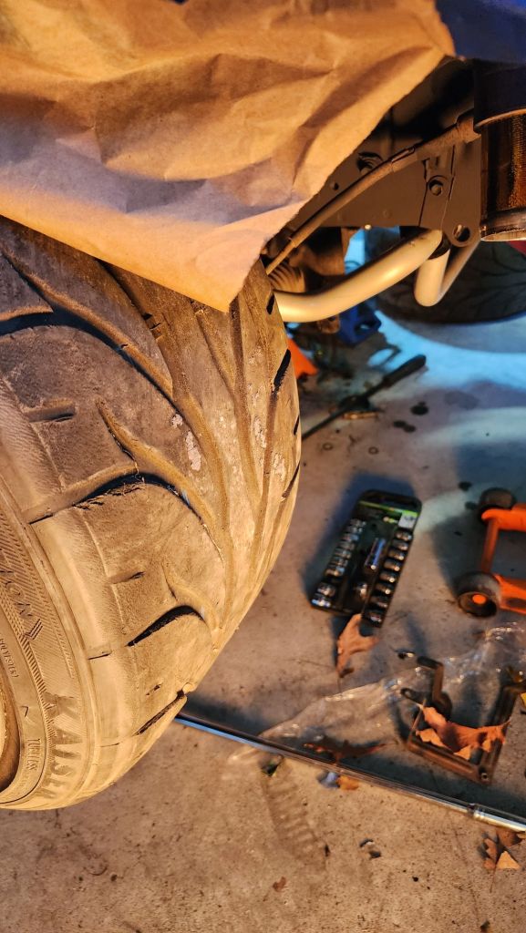Got the tire rebeaded. There is slight damage to the bead unfortunately but its holding air. I also flipped the tires on the Equips and put them back on the G.