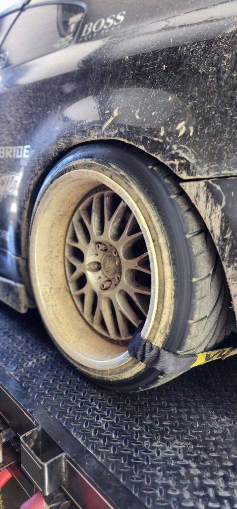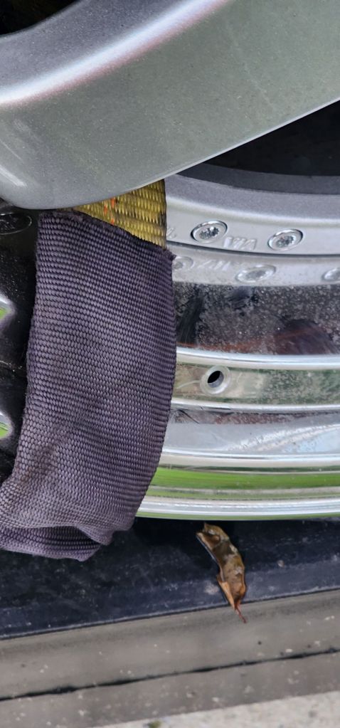 After getting the car strapped down I cranked each strap one more time. On the last strap I heard a loud hiss. My heart sank and I instantly knew what it was.
