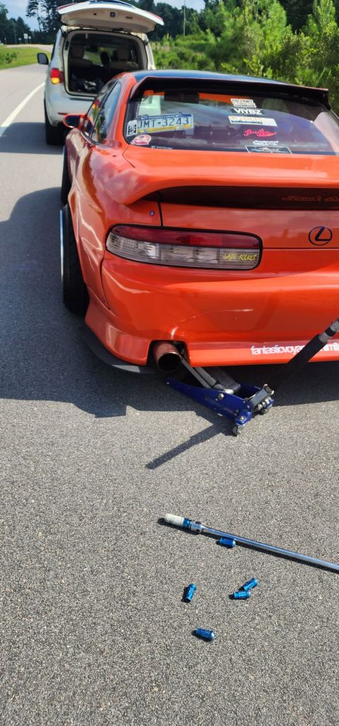 I woke up this morning to my lady complaining and arguing. The more I tried to diffuse it the worse it got so I just focused on what I had to do today. My son had been asking me to take him to daycare in the SC for months. After working on the oil leak all weekend I needed to test it and make sure it was finnally good. So this morning I pulled it out to take on the commute. Getting it out the garage and the driveway is an entire production. As I pulled onto the highway I felt a little shimmy in the back. So I took it slow. Something felt off so I pulled over and looked under the car thinking an arm had come loose. I even shook the rear wheels to see if there was play. The right rear had slight play but not much.