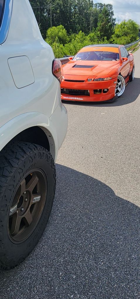 I finally got the car ready for the Bottle Rockets event. I loaded the car on the trailer careful not to damage the aero or the wheels. The SSRs have valve stems near the outside of the lips that are easy to snag and replacements are expensive. I also loaded the truck with wheels, tires, and tools. The plan was to leave from work Thursday and stay in Charlotte by a freind then continue to Atlanta.