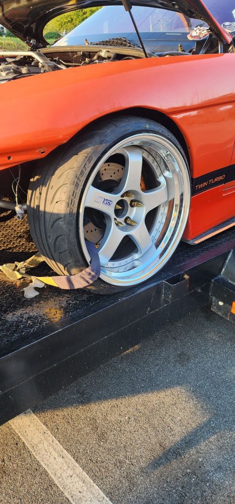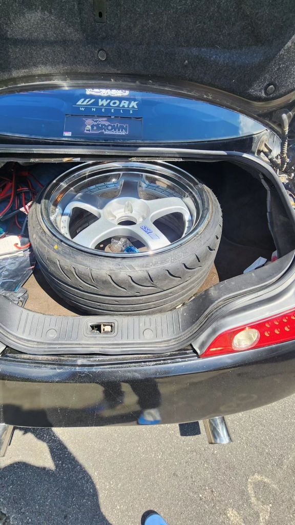 I texted my freind that I was no longer coming. After sitting and thinking I decided to push through. I’ve met adversity a lot before and I always persevered. I had spent weeks fixing this oil leak and getting the car ready and this was a great opportunity to drive with some folks I hadn’t seen in a while and at a new track. So the next morning I pulled the wheel off, put it in the G35, and took it and the new stem to a tire shop. I asked them to make sure they got the broken piece out the wheel because it would throw the balance off.