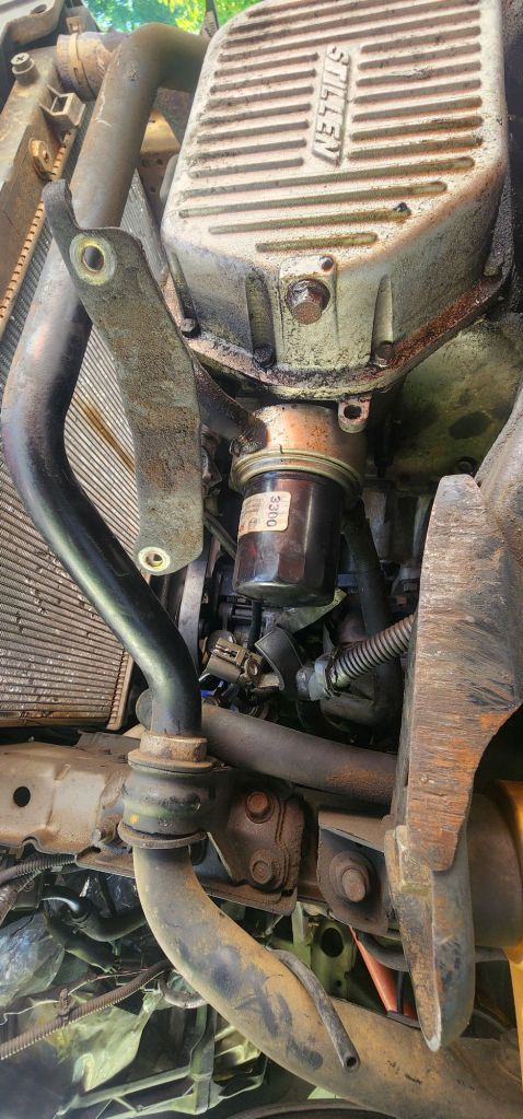 The strut I replaced late last year had leaked internally into the airbag. The pressure burst the bag and was leaking all the fluid in the ground. Thank God I had come back home. I would have been stranded because he 33s were too wide to clear the rear quarters and would have gotten cut.