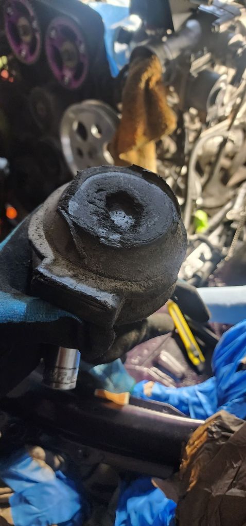 Wild. I must have been driving on these for a LONG time. This also explains my broken and loosening power steering AN lines as well as my intercooler couplers blowing just from the engine movement. At one point I felt like the throttle was running away from me which also makes sense.