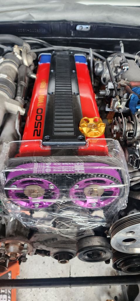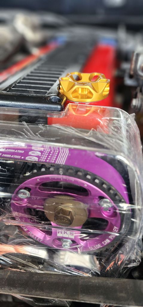 I spent entirely too much for a timing belt and oil cap. But twas worth it.